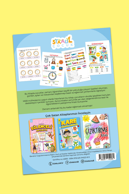 Zamanı Ölçmeyi Öğreniyorum - Çocuklar İçin Eğlenceli Eğitim Kitabı 6-8 Yaş (Saat,Mevsim,Ay,Gün)